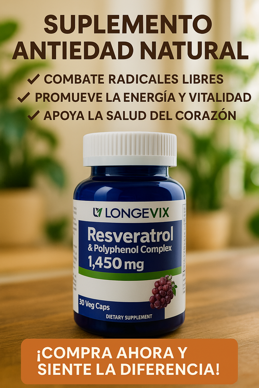 🍇 Resveratrol Premium 1450 mg – Antioxidante Natural Antiedad (60 cápsulas)