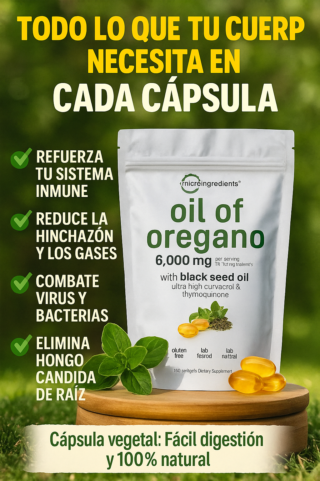 🌿 Libérate de la hinchazón y el cansancio con el poder del orégano puro