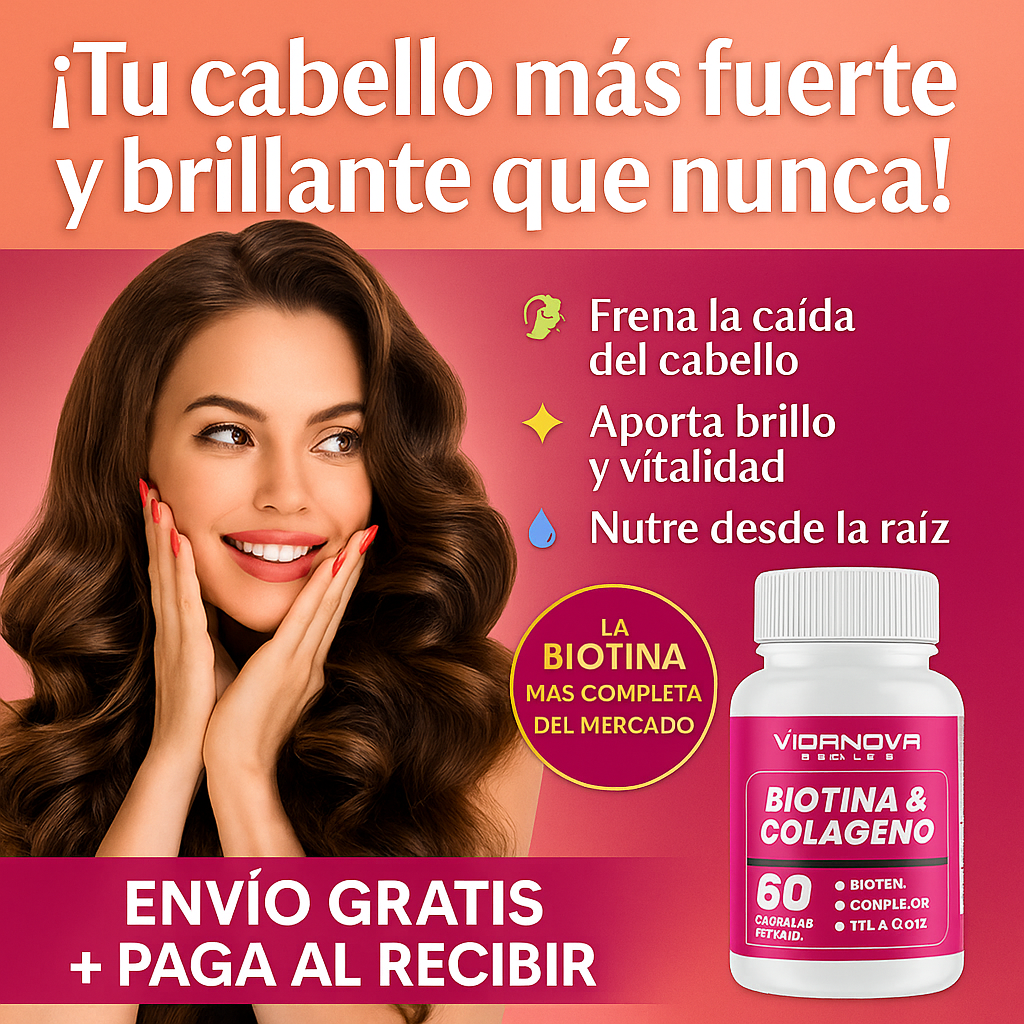 🏆 ¡Éxito Mundial en Ventas! 🌍🥇 BIOTINA + COLÁGENO es la solución más efectiva para frenar la pérdida de cabello ✅
