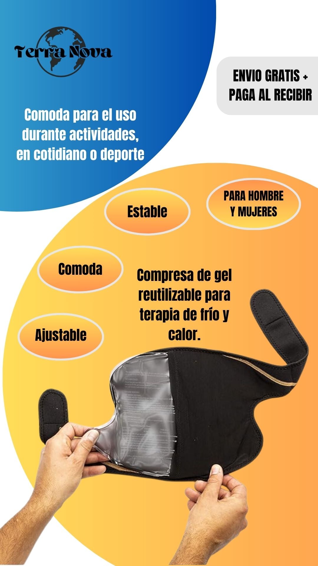 El pack incluye 1 rodillera ajustable con bolsillo integrado y 1 gel reutilizable. Puedes pagar al recibir tu pedido y el envío es completamente GRATIS. 🚚💵